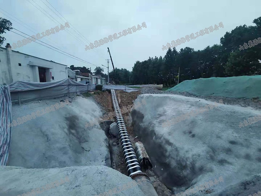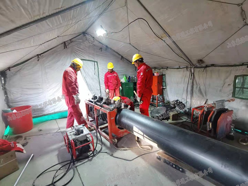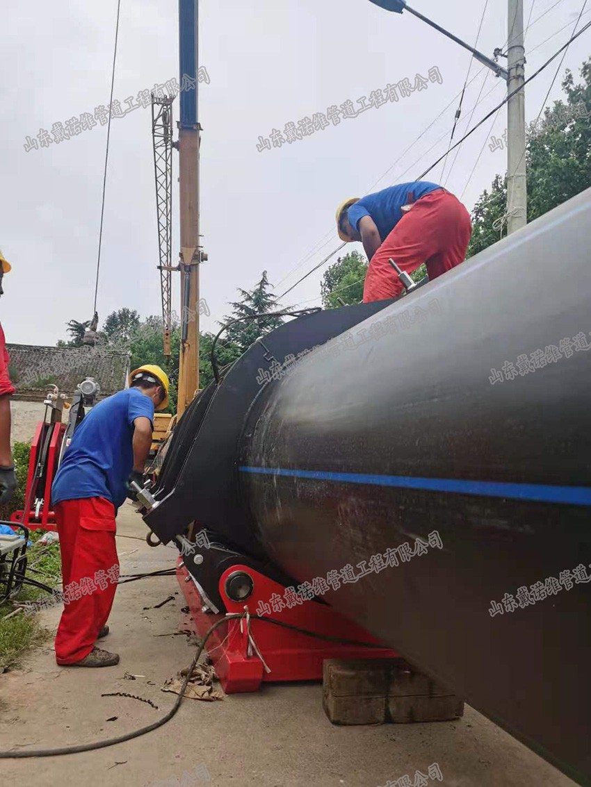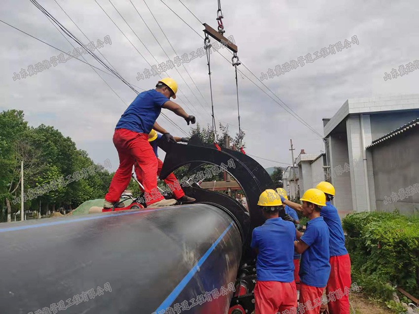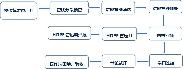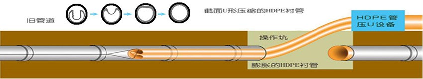 管道內(nèi)襯PE管修復(fù)是將外徑等于或略小于待修復(fù)管道內(nèi)徑的HDPE襯管,通過(guò)專用壓U設(shè)備,截面被壓變成雙層U形。在牽引力的作用下穿入待修復(fù)管道內(nèi)部。穿插到位后,利用壓力打開管腔,使之恢復(fù)成圓形,與外管道內(nèi)壁貼合,形成牢靠的復(fù)合管。