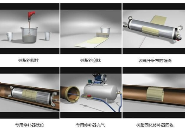 2、施工時間短,由于修復材料固化時間短,從樹脂混合到完成局部內襯修復僅需數(shù)十分鐘,可在很短的時間內完成工作;